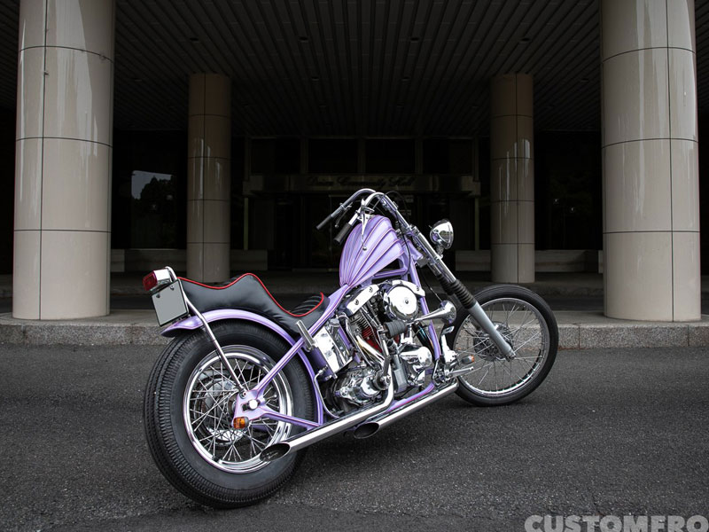 ストックのフォークは4インチ延長。特徴的な表情を醸すヘッドライトはワンオフで、フォークブーツを装着。