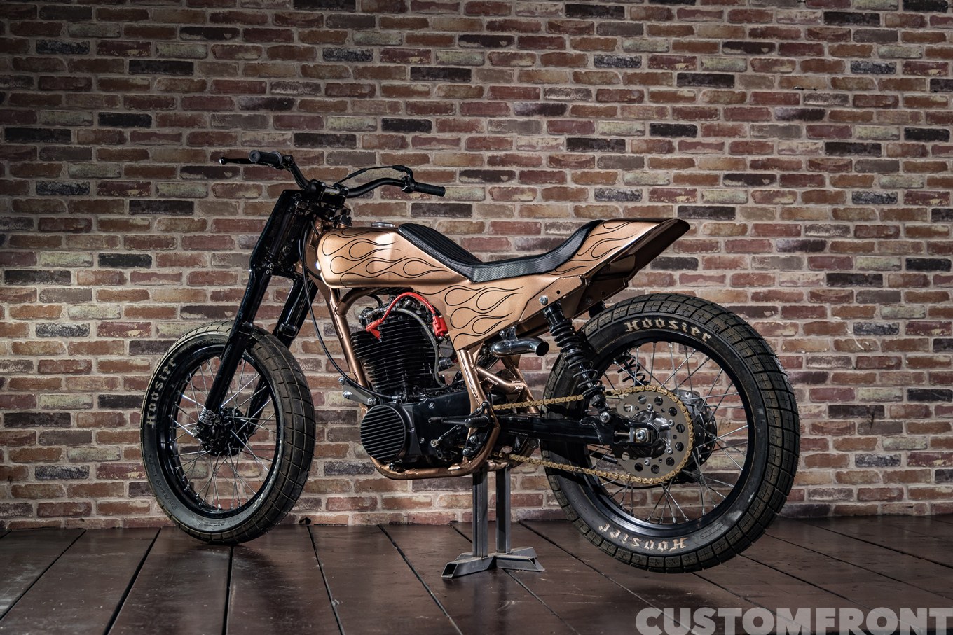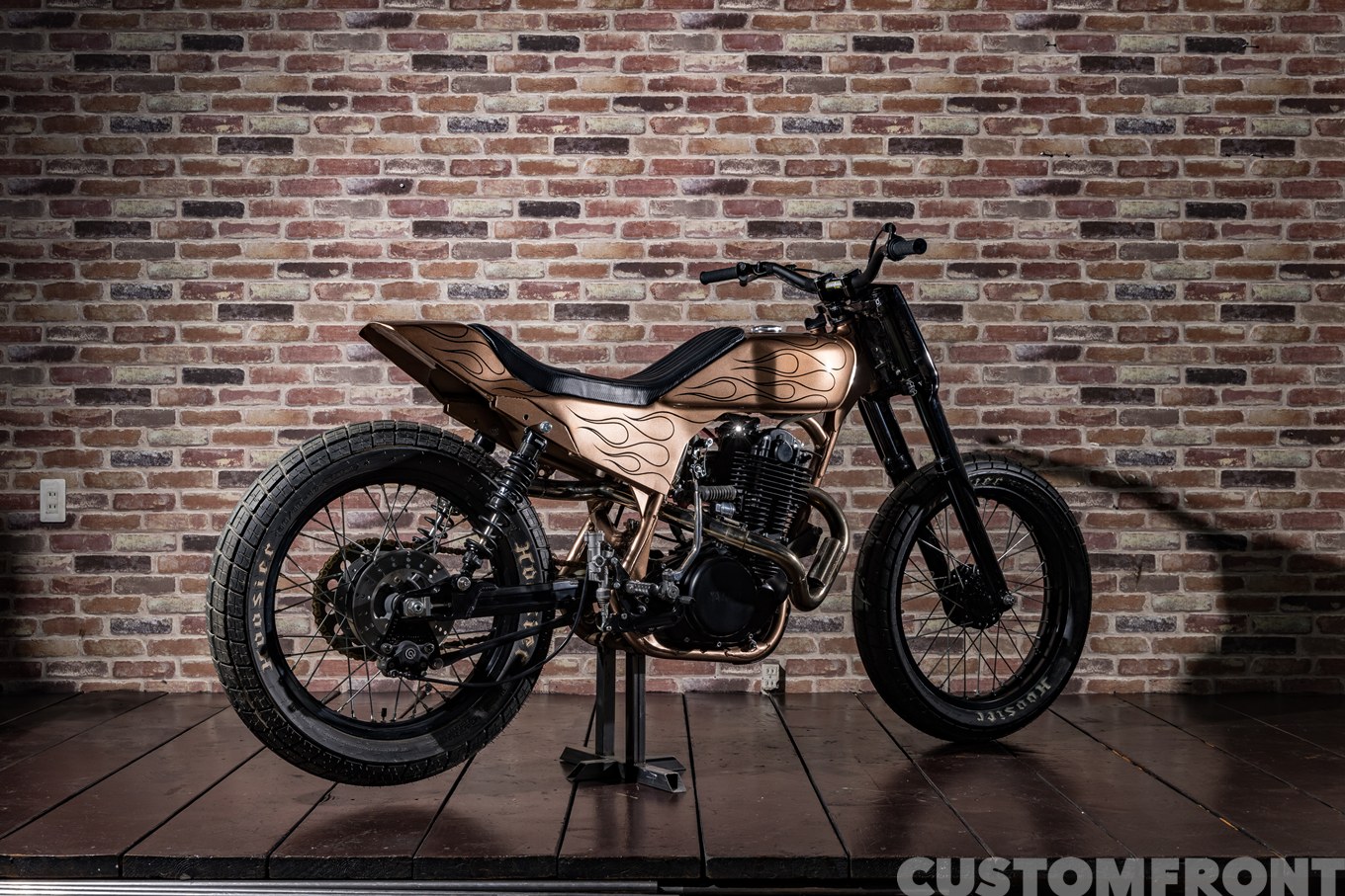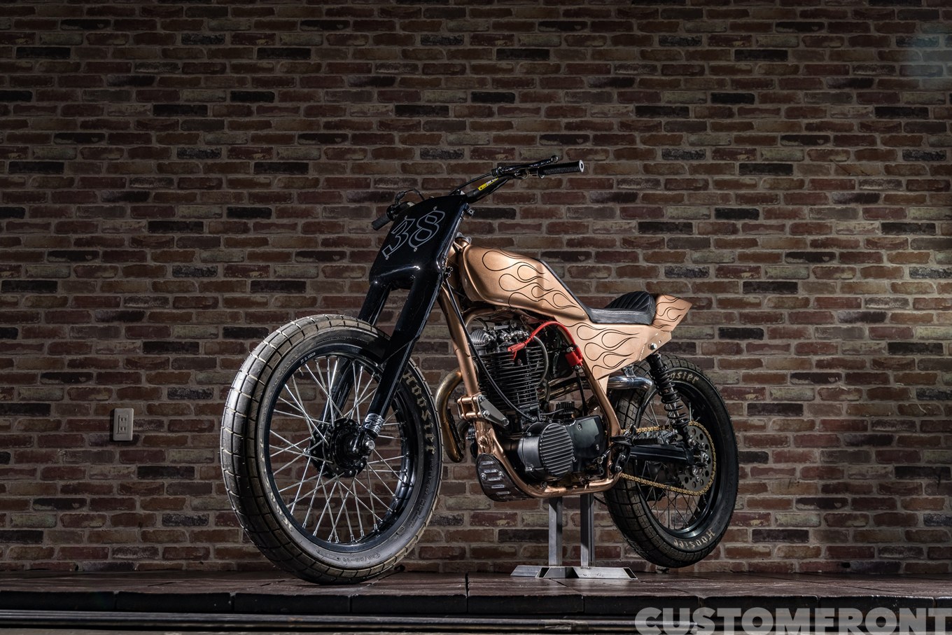 これまで数多扱ってきたヤマハSRを本流に、ストリートを主戦場に定めた「街に映えるマシン」をリリースしてきた福岡の『ランプサイクル』。しかし今回はアスファルトでなく、土の上を駆け抜けるべく生まれた100%ピュアなフラットトラックレーサーだ。