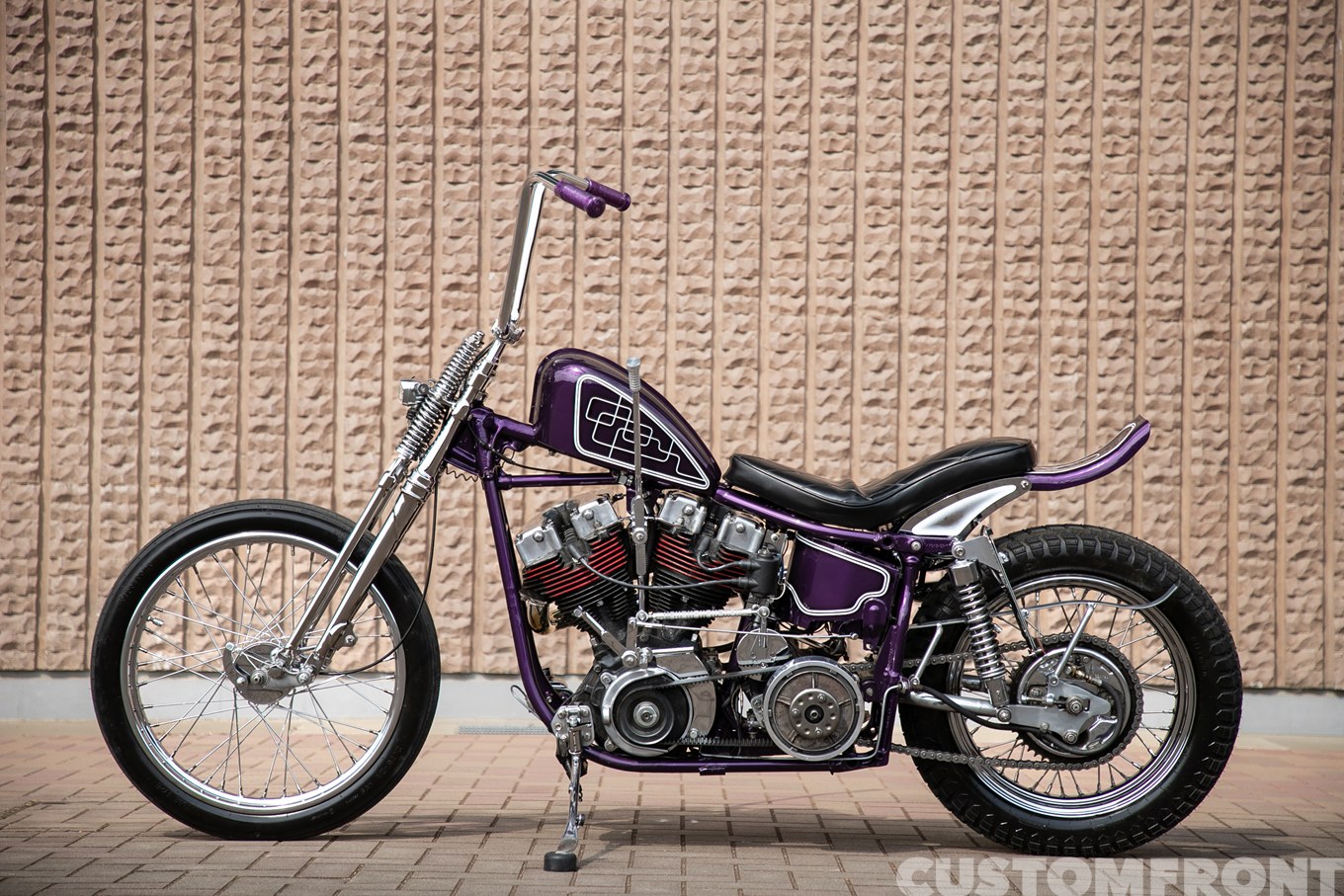 「ウチで以前からやっているんですけど、サス付きの車両に敢えて長いのを付けて後ろをパンパンに上げるという。それをやりながらちょっとダート風味に振って、チョッパーの要素も残しつつというのがポイントです」