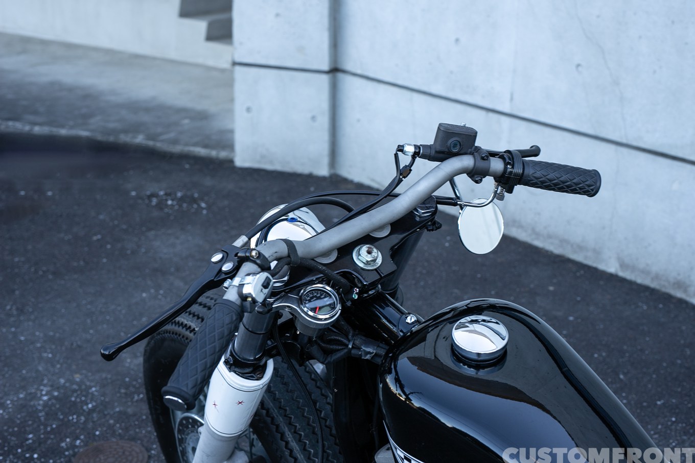 サンドブラストとそれに見せかけた塗装が混在するのがこのカスタムの見どころ。ハンドルはSAM’S製。