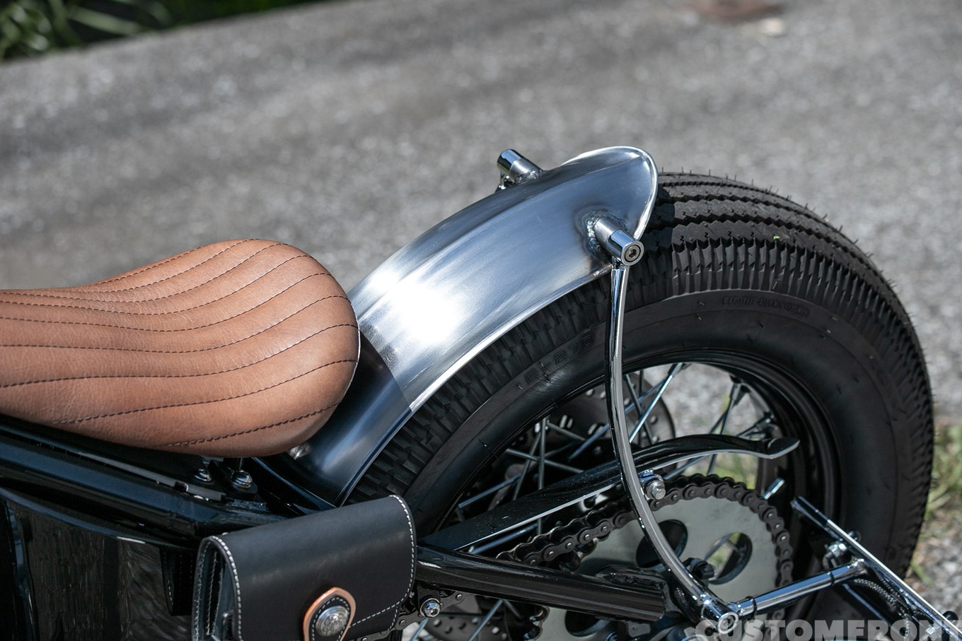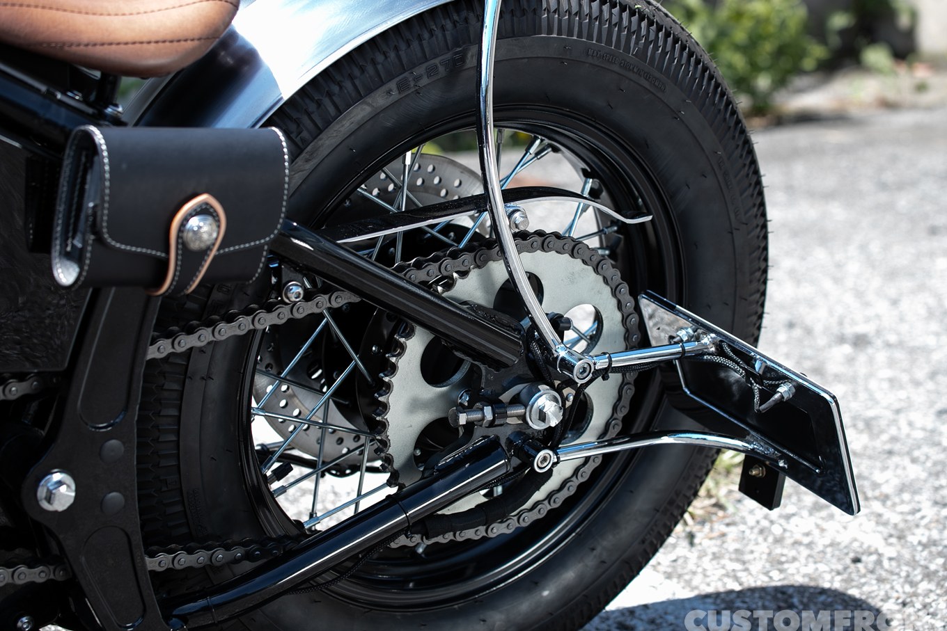 ナンバーステーやフェンダーステー、チェーンカバーなどそれぞれをワンオフ。やり過ぎに配慮して製作された。