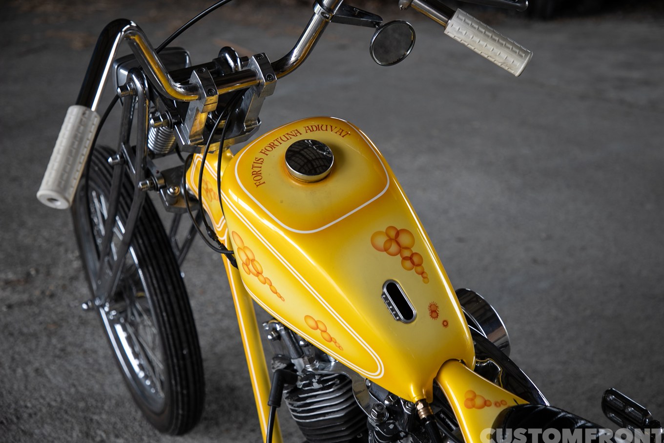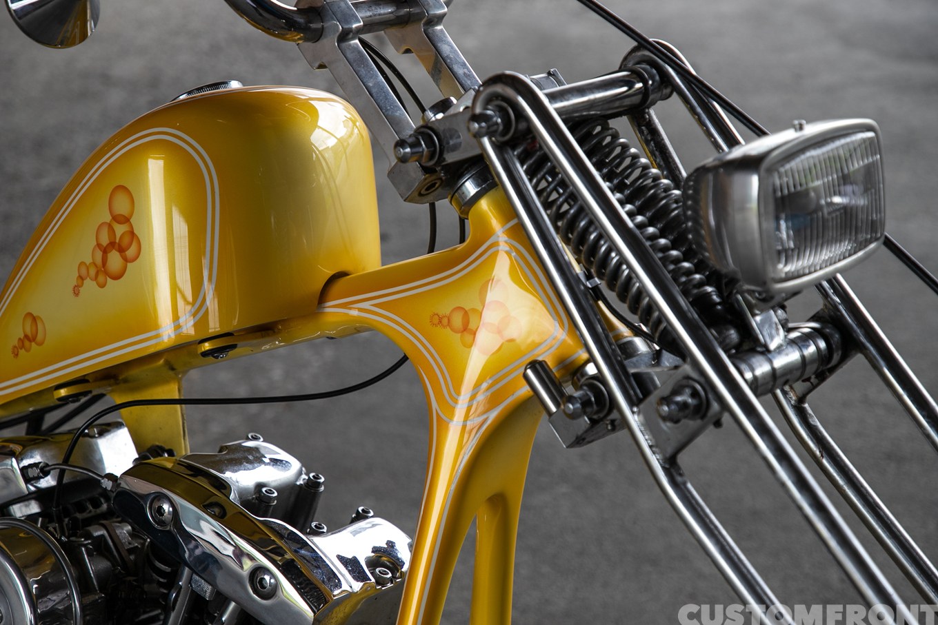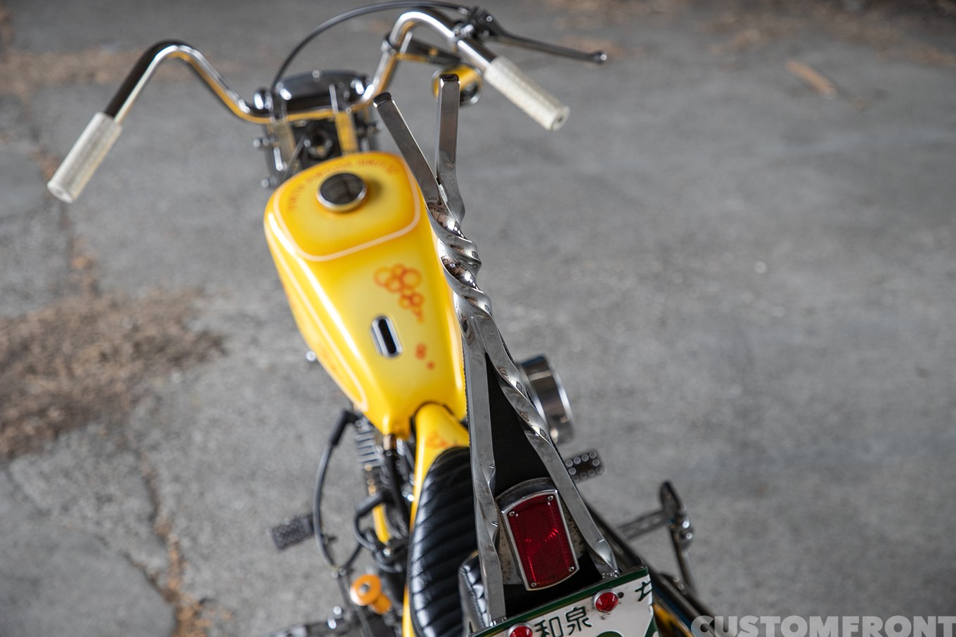 他にマストだったのがフロントのガーターフォーク。そこでツイストを入れたシッシーバーとの均衡を計りつつも、その両者の味が濃い目のために、別の外装部分については出来るだけシンプルに作っていったと言う。