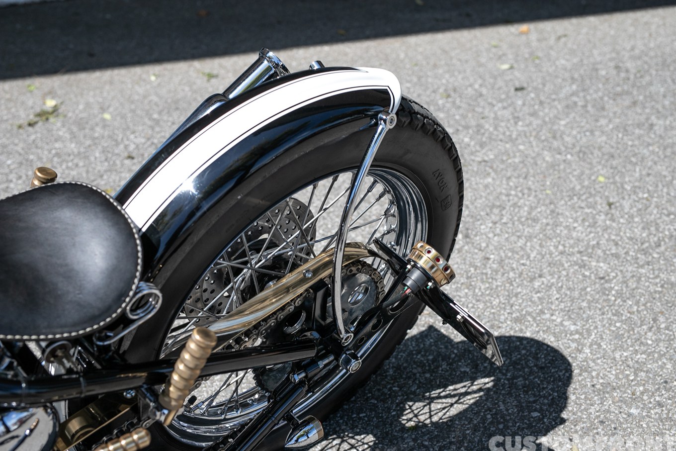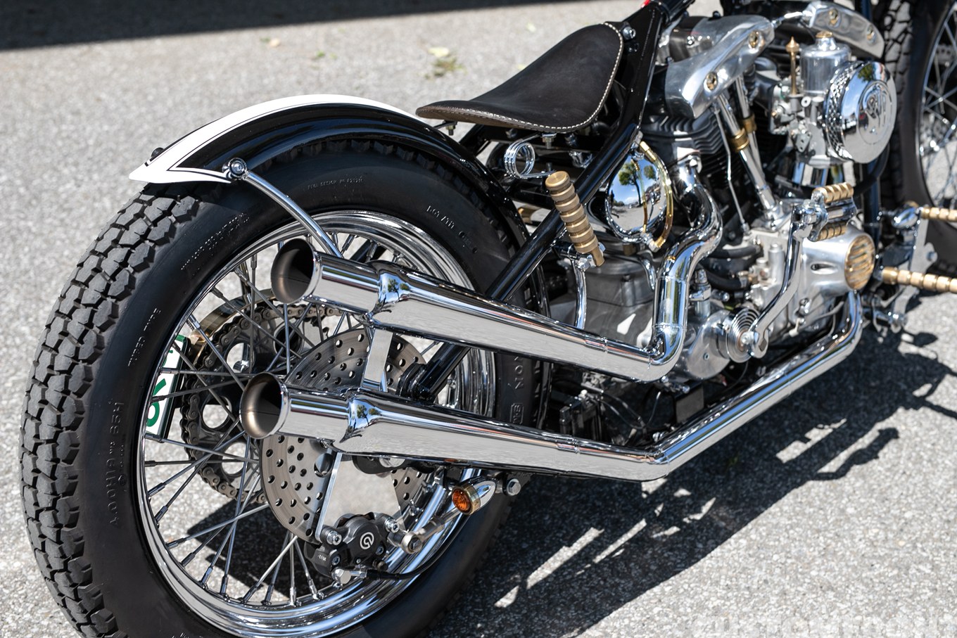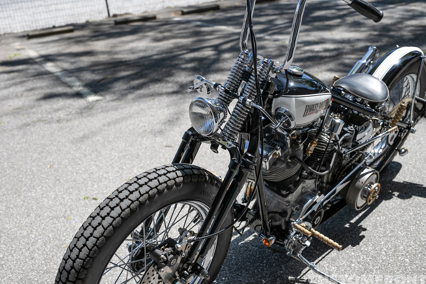 リジッドフレームにショベルヘッドエンジンを積んだ王道かつ、トラディショナルなチョッパー。腕一本で勝負する玄人だからこそ互いを認め合う、もはや神々しいまでの交感がそこにはある。
