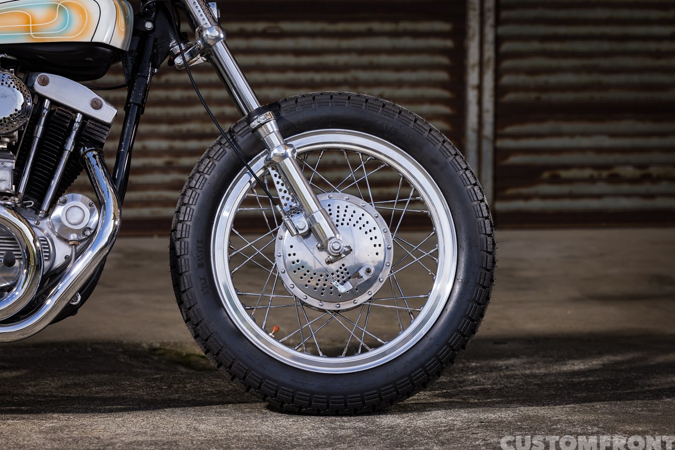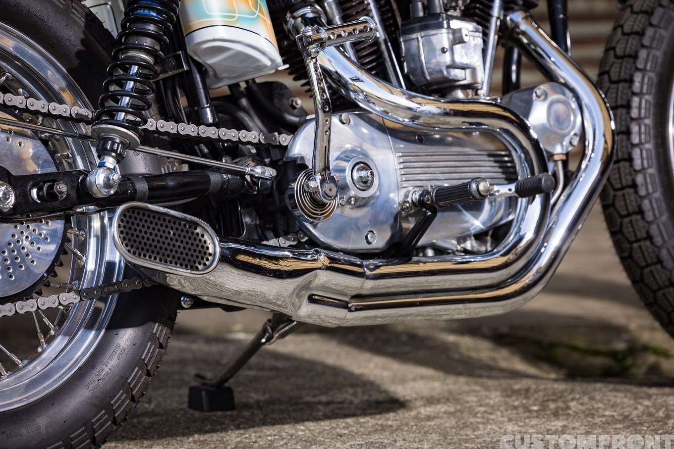 ショップにはヴィンテージパーツに造詣が深いというオーナー自らチョイスしたフロントエンドや外装類といったパーツが運び込まれた。与えられた素材を前に、それらをどう料理するか……思案を重ね、氏は動いた。