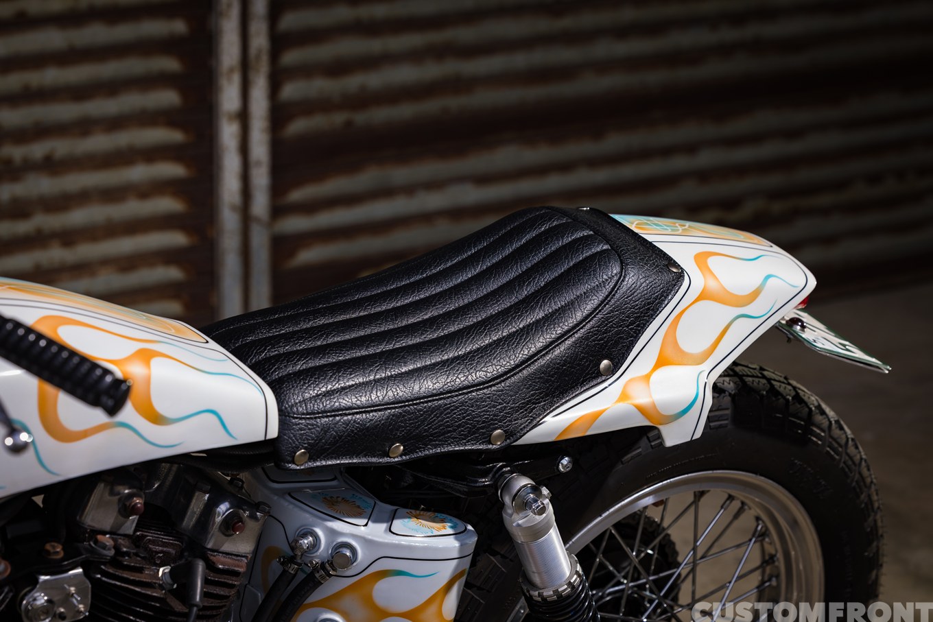 XR750にインスピレーションを得て制作されたシートはMITSUNAGA AUTO INTERIOR & DESIGNが制作。