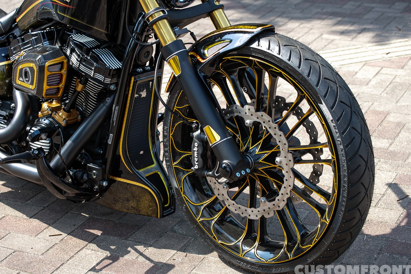 サンダーバイクのコンプリートカスタム FXBR(Softail Breakout) 2023年のフロントホイール