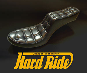 全体をエッジを効かせたデザインで統一したチョッパーのフロントには、ハーレー用ガーターフォークを厳選。偶然にもトライアンフ用にコンバートされていた物だが、そのままでは使用に絶えず、加工屋にて幅が出張り過ぎていた箇所を調整。