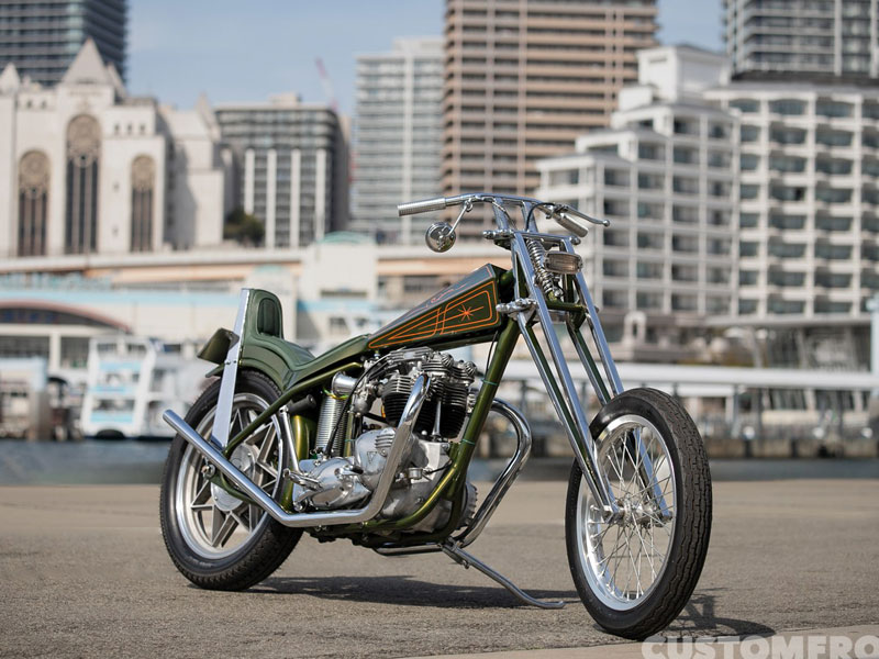 「リジッドのチョッパーに乗りたいっていう話やったんで、’70年代のチョッパーとかディガーをベースにしてですね。あとは自分なりに考えて作った感じです」