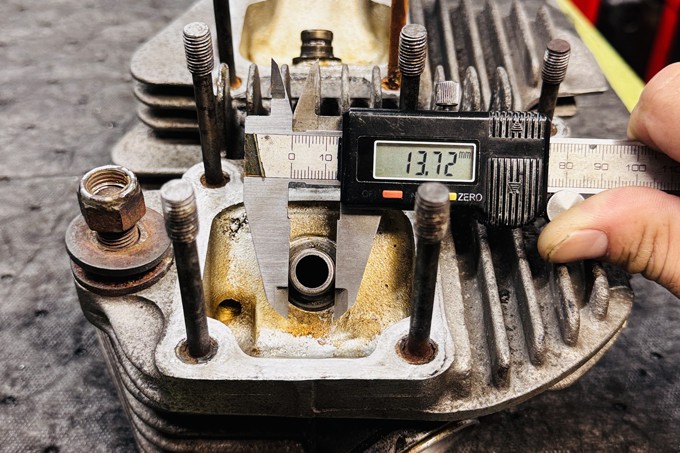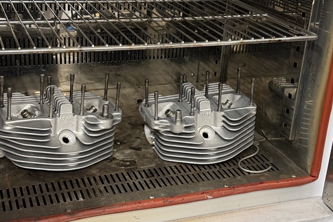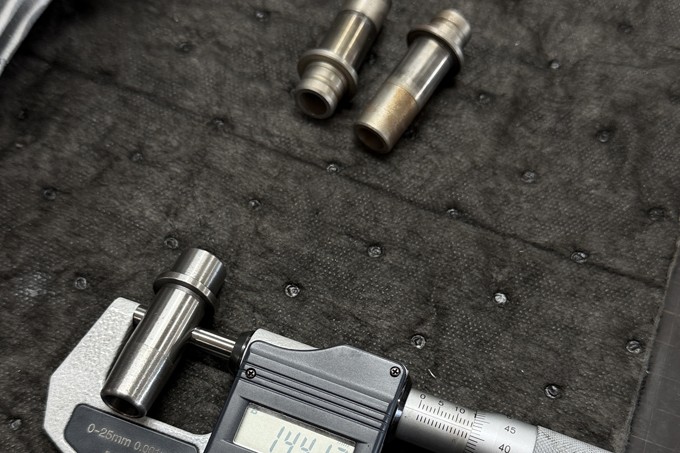 シリンダーヘッドのシートカットやバルブガイド交換、そしてパウダーコートを45ディグリーへ依頼。ヘッドワークはバキュームテスターを使い、まずどこまで傷んでいるかをチェック。修正箇所が見える化されることで作業方針が明確となる。
