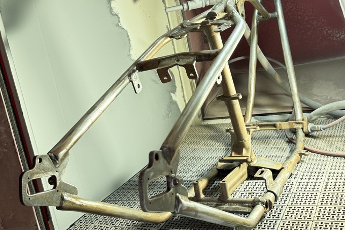 『アーリースターズ』が得意とするフレーム修正やエンジンワーク。その外注先としてパウダーコートやエンジンパーツ、内燃機加工といった面で機能するのが『45ディグリー』だが、特筆すべきは、ショップ間での分業制が円滑に確立されている点である。
