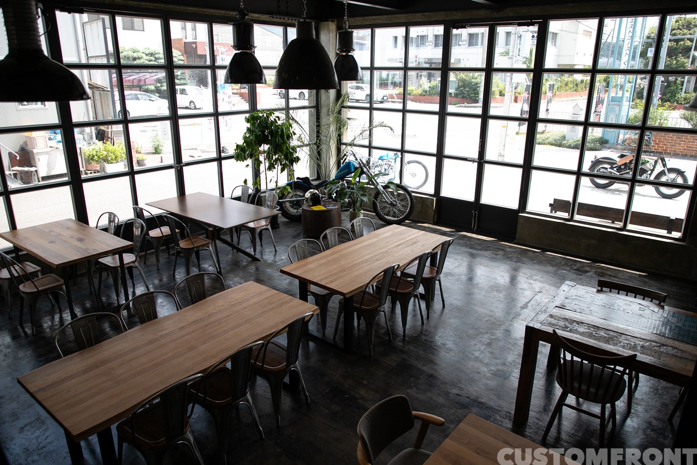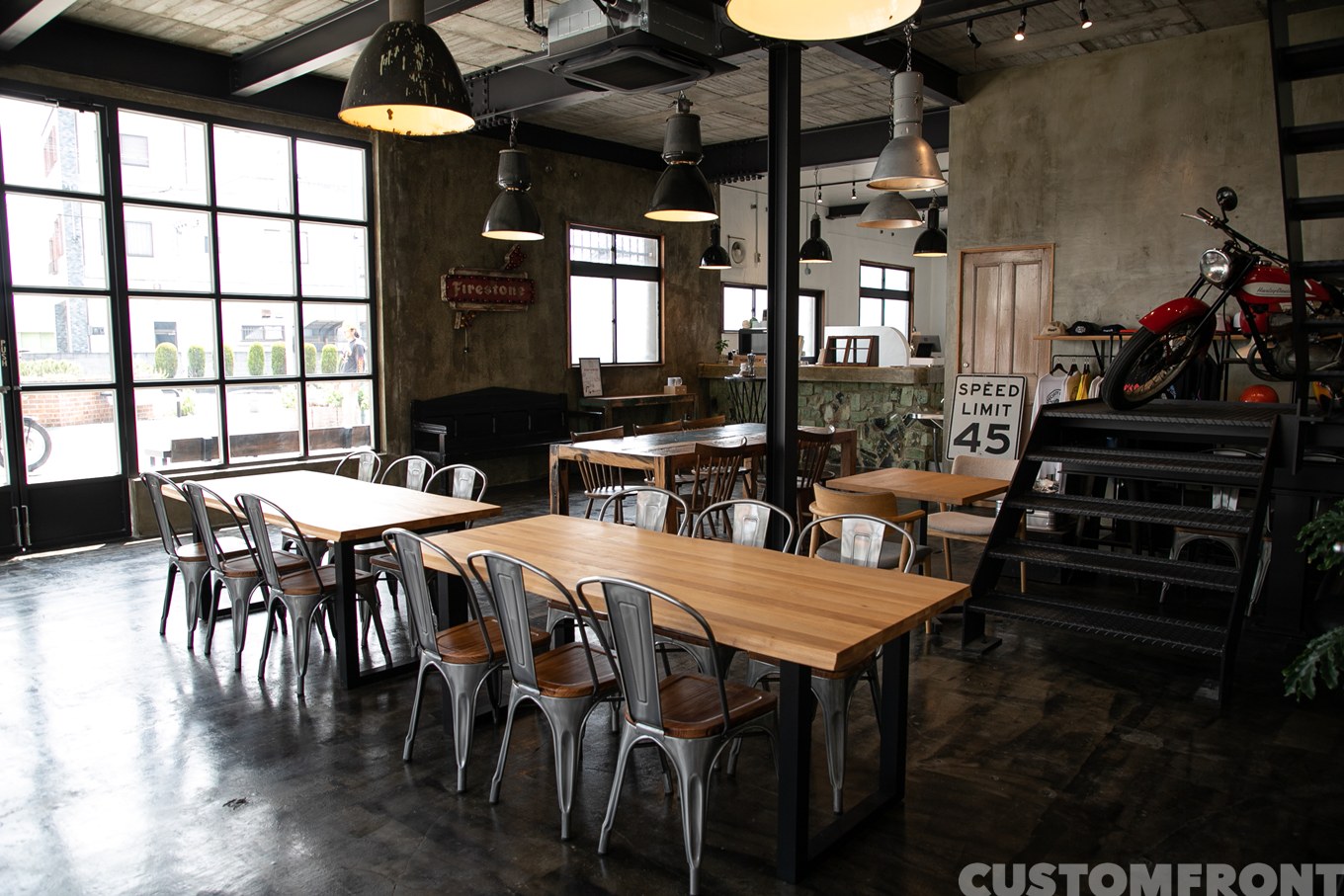 元々は、全国からバイクを見に訪れる来店者の憩いの場として。コーヒーでも飲んでゆっくりしてもらえる場所を用意したかったことで始めた店である。