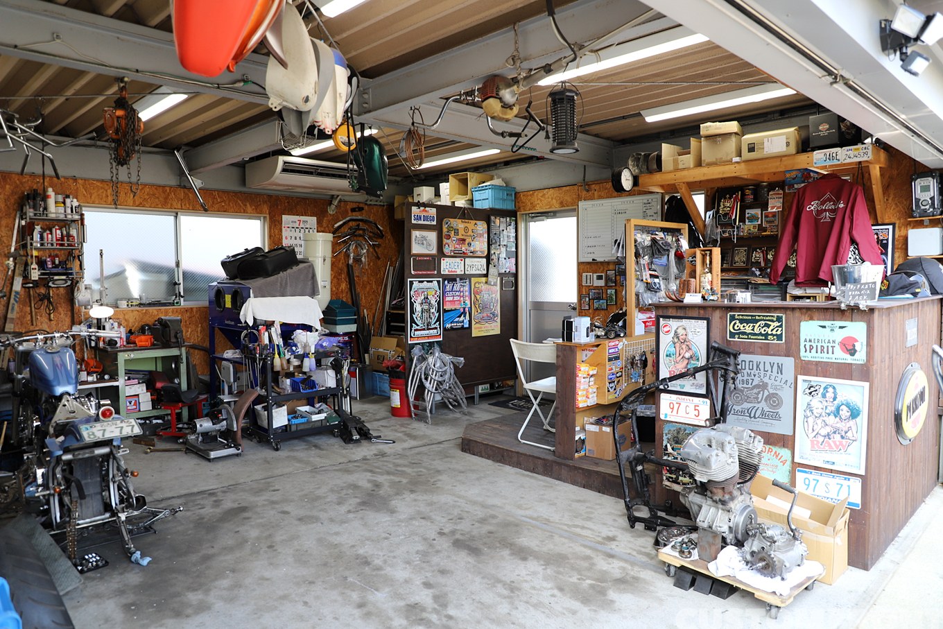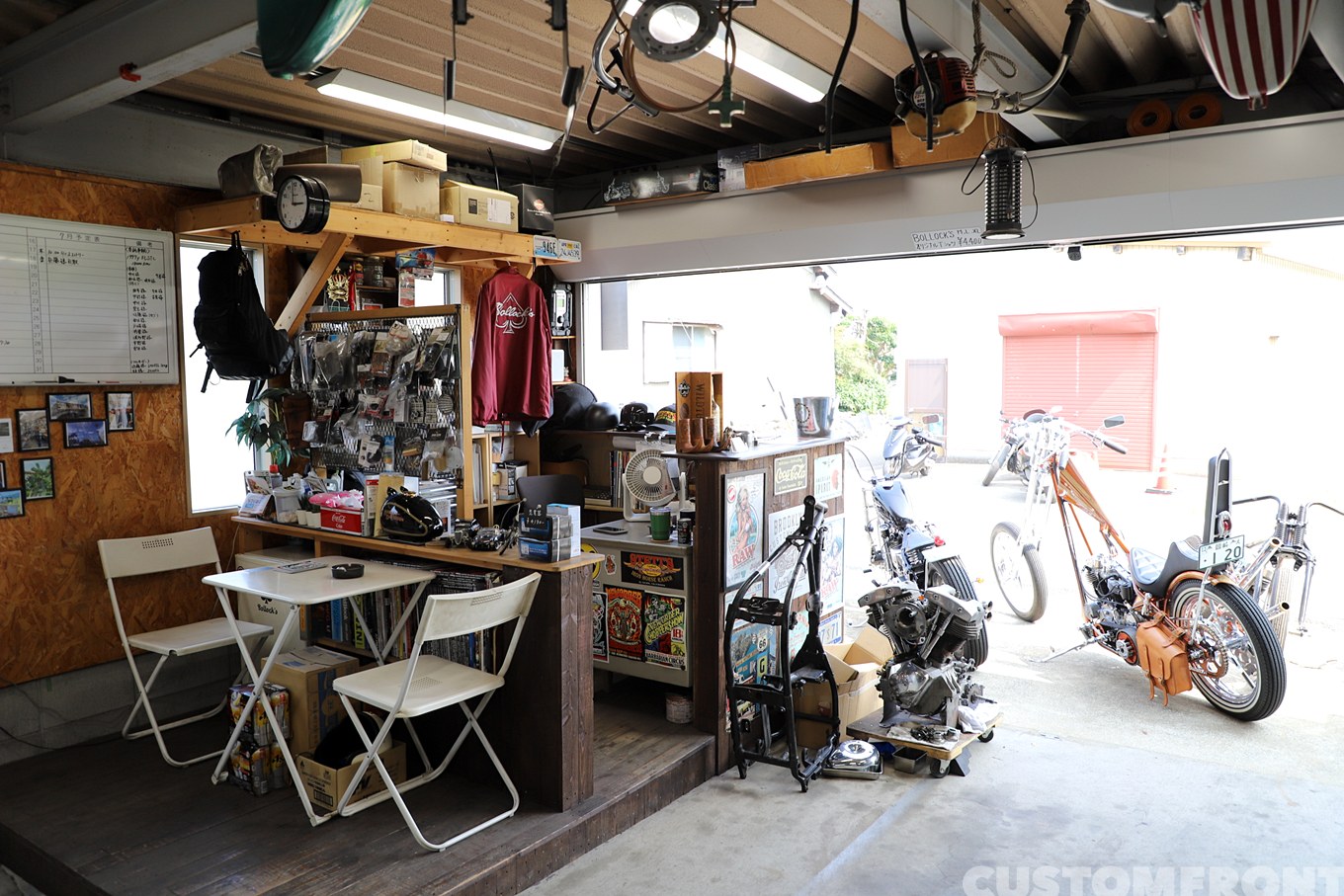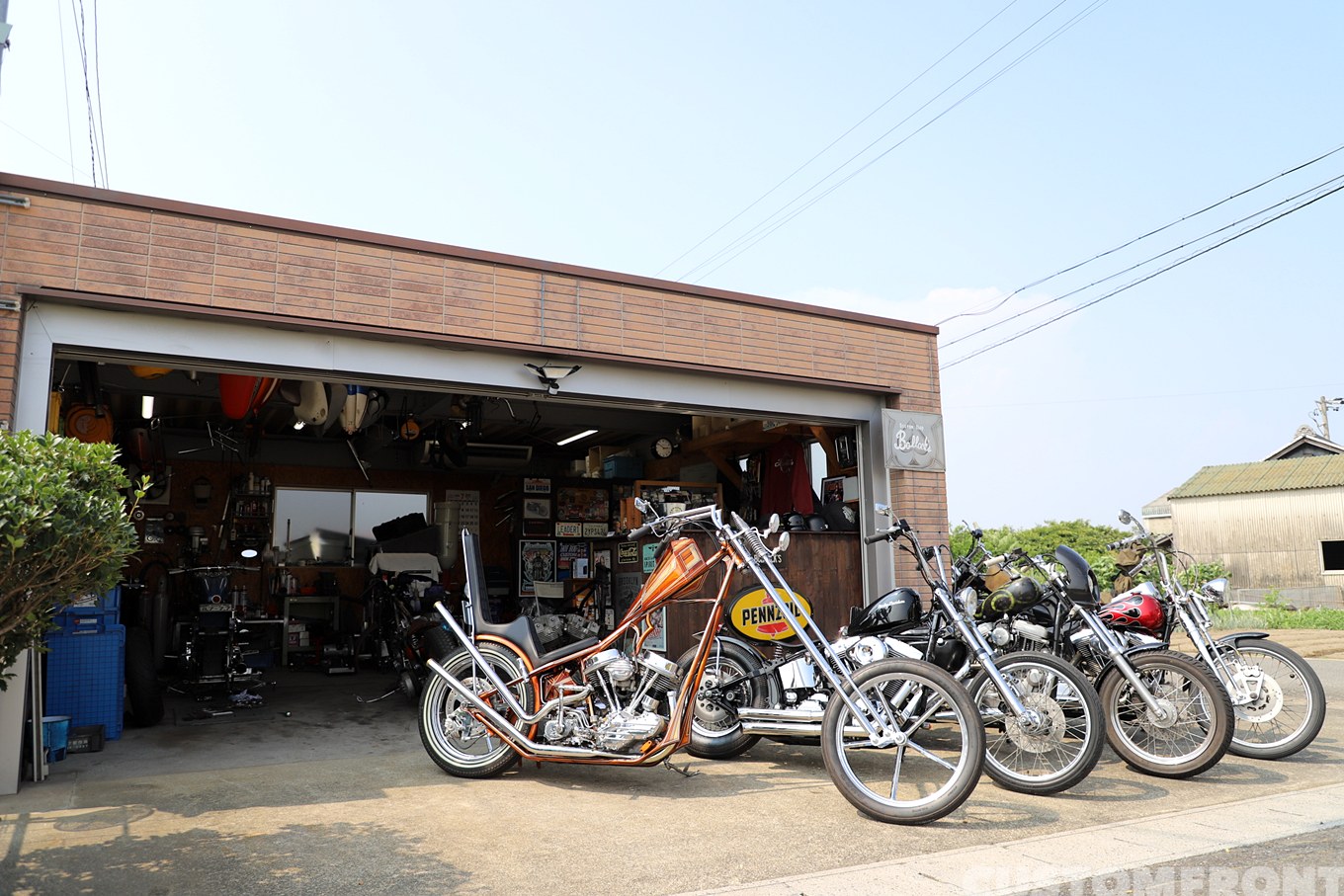 「とりあえずあそこに相談しよう」。そう感じさせるアットホームな雰囲気が特長的なショップである。表通りから外れたこの場に主人の吉田さんが店を開いたのは2019年で、ハーレーから国産車まで、主にアメリカンバイクを中心に接客。特に多いのはハーレーのショベルヘッドやエボリューションだそうだ。
