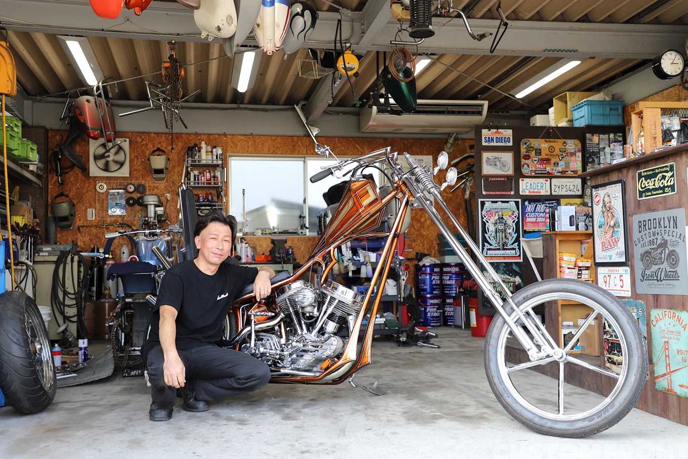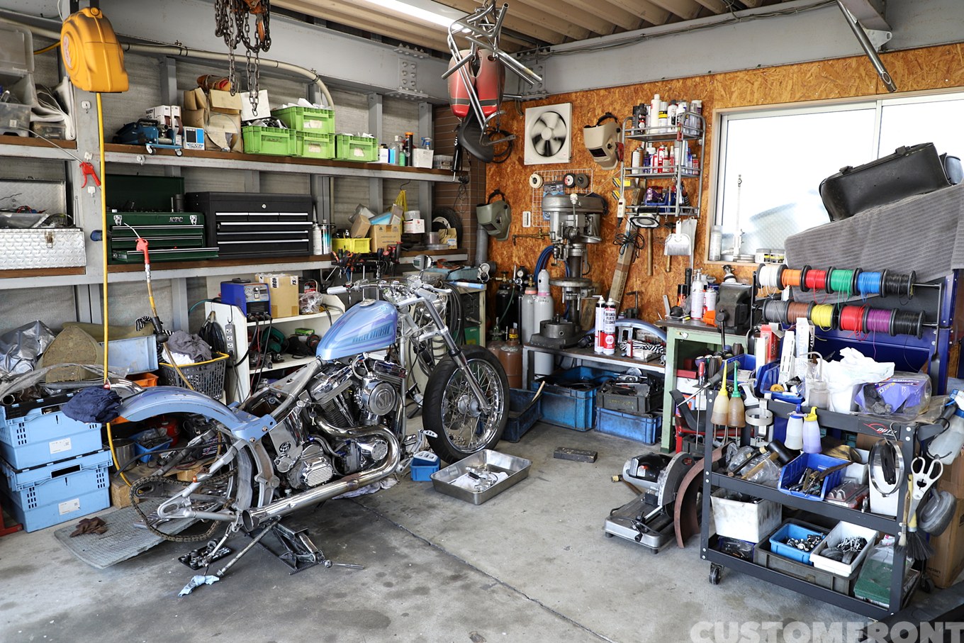 カスタムに関しては、ロングフォーク系の数をこなしてきている分得意とするが、他にもドラッガー系など、スタイルを問わずに幅広く包容。お客さんと相談しながら作り上げていくことに重点を置いている。