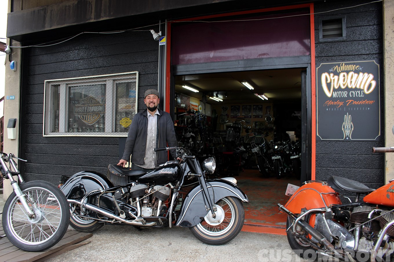 2012年にオープンした同店は『修理屋』を謳い、オールドハーレーとインディアンに特化して運営される。「カスタムも出来なくはないけど」と、かつてカスタムショップに勤めながらも、本陣はやはりエンジンを中心としたリペア面だ。