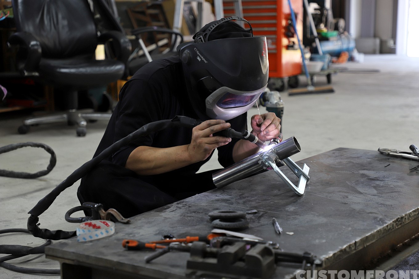 ロングフォークを得意とした名古屋のカスタムショップを経て、工場の保全業に転身。そこで溶接工として働き、苦手だったアルミやステンレスのTIG溶接の修練を約3年積んできた。