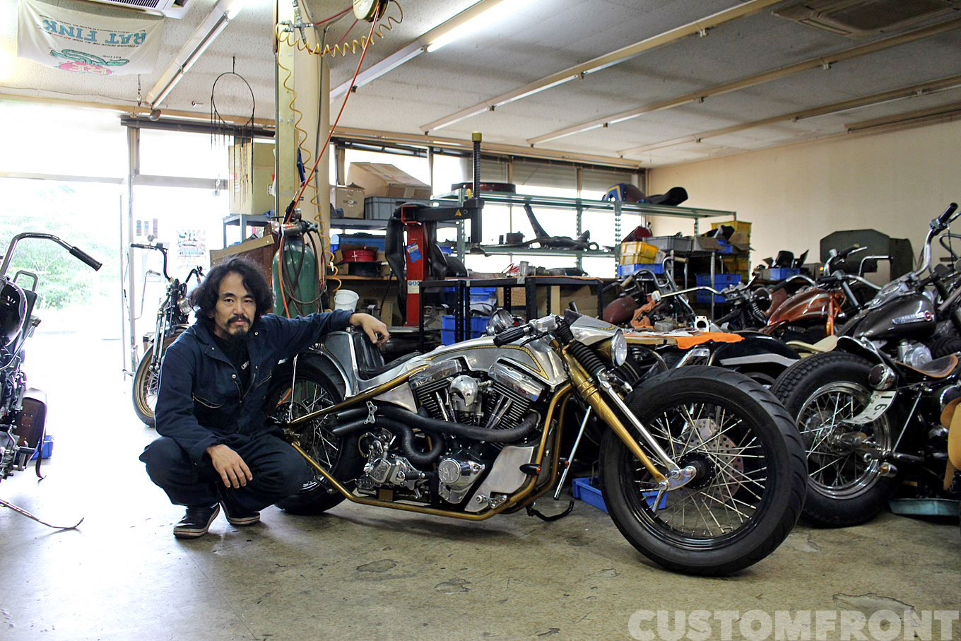 これまで地元開催のカスタムショー『ジョインツ』や『神戸ニューオーダーチョッパーショー』などでチャンピオンの座に輝いた実績を持つ同店は、扱う車種に制限を設けず、困った人が来たらまずやってみるという姿勢で運営している。