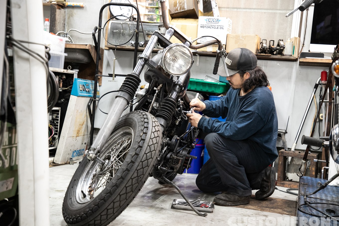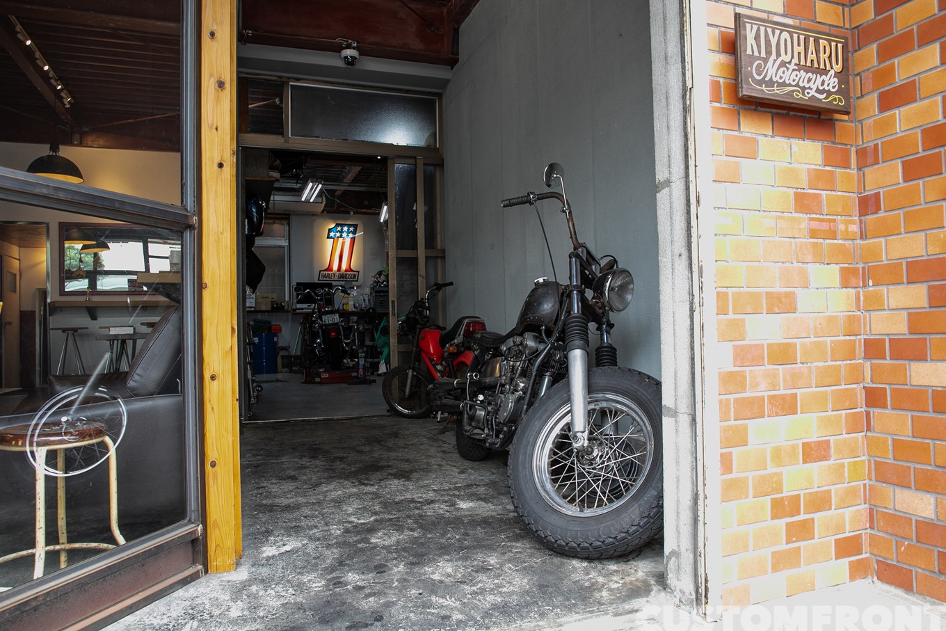 開業は2024年で、ハーレーを専門にして主にショベルからナックルヘッドといった旧車を中軸としている。カスタムや修理などバイク全般の面倒をみるキヨハルこと店主の藤本さんは、普通に乗りやすいバイクにすることが得意だと言う。
