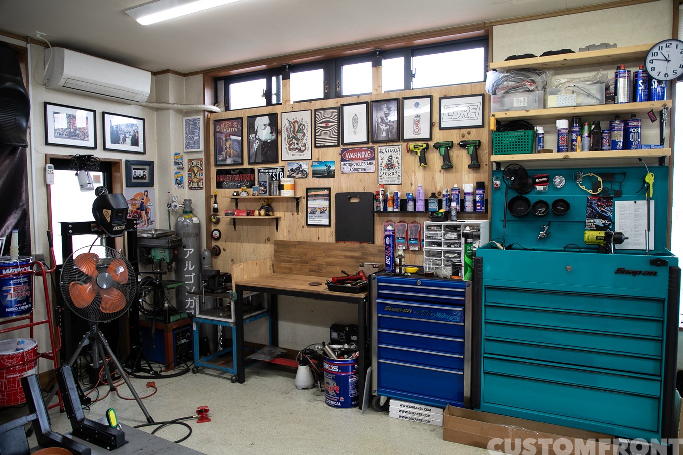 主人の森山さんはこれまで、正規ディーラーに勤めていた経験から整備に最も力を注ぎ、そこが出来て初めてカスタムにかかるという規範を持っている。バイクが調子良くまともに走ってからでなければ外装のコンバートはないと話す。