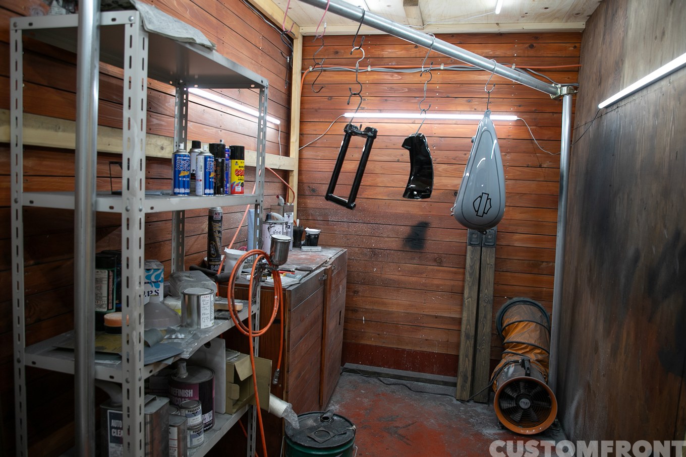 足跡をたどると、整備士学校を経て、千葉県のカスタムに強い大型中古車販売店で3年、神奈川県を包括するハーレー正規ディーラーで5年。そして横浜の知名なカスタム屋で12年と、適切な配分で新旧モデルに携わった後に独立。特にカスタム面では際立って英気をみなぎらせている。