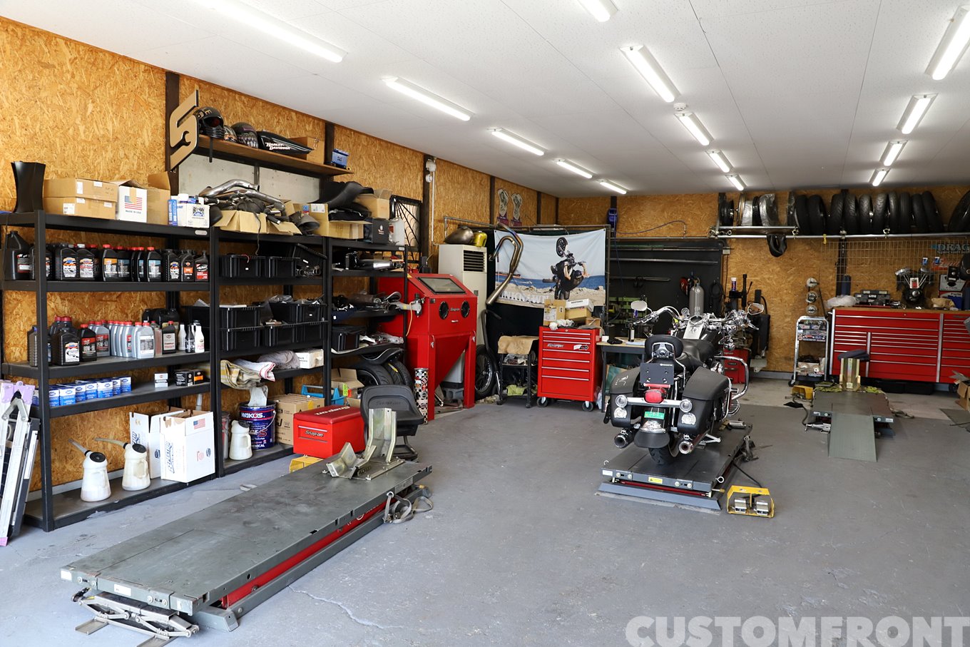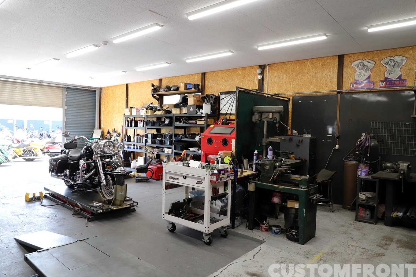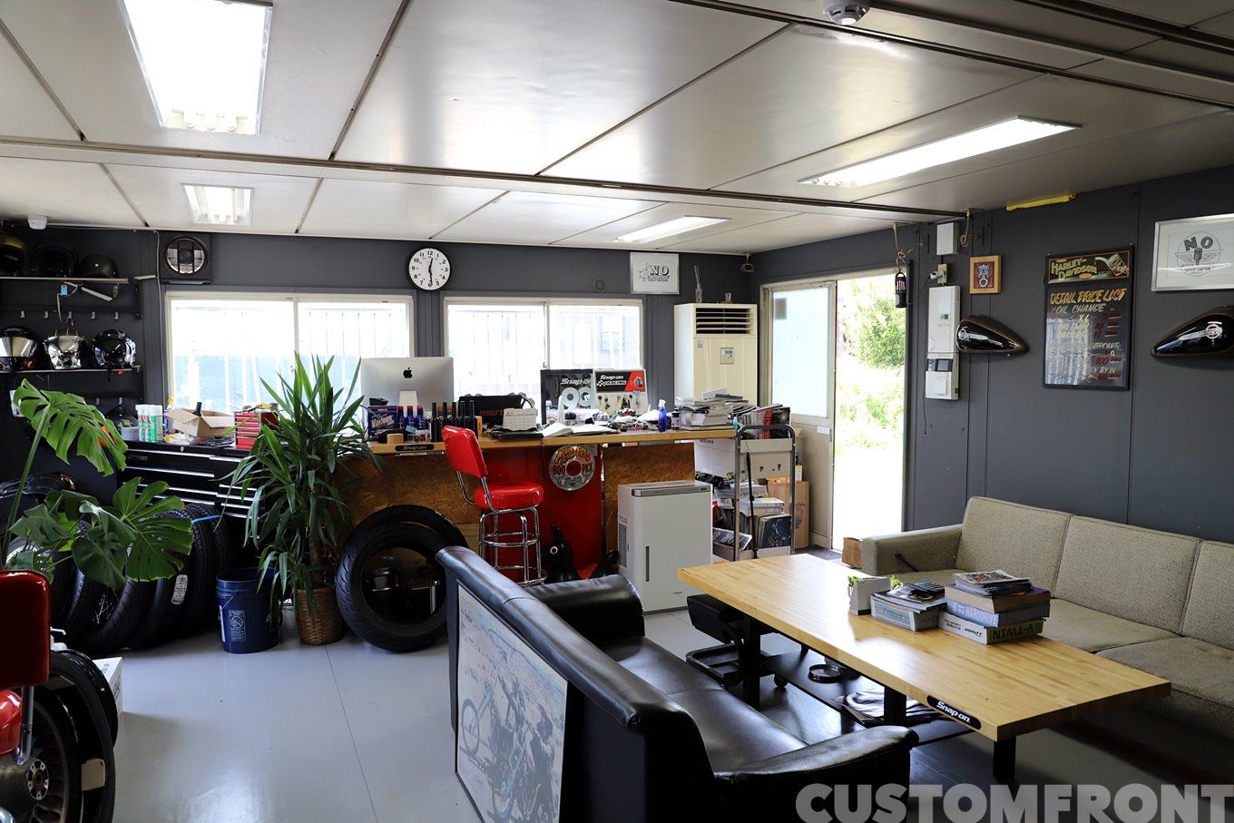 チョッパーからバガースタイルに至るカスタムと、内燃機などの重整備まで。EVO以降の車両に関して、困ったことがあれば何でも相談して欲しいと氏はにこやかに語る。「みんな敷居が高いように思ってますけど気軽に立ち寄ってもらいたいです。わりとフレンドリーですから(笑)」。